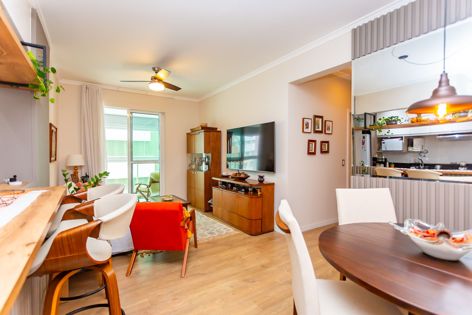 2 Dormitórios, sendo 1 suíte2 Banheiros1 VagaGaragem Coberta1 Sala de TV1 Cozinha1 Sala de jantar1 Área de serviço